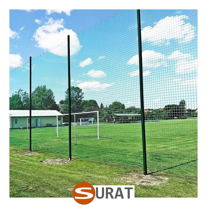 Piłkochwyty o najlepszym stosunku jakości do ceny - wytrzymała siatka PP 4mm w kolorze zielonym lub grafitowym, sprzedawane na wymiar z 6m wysokości i 7m słupami.